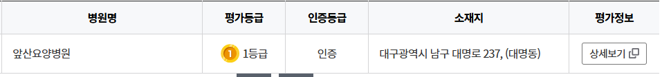 저희 앞산요양병원이 건강보험심사평가원에서 시행하는 적정성 평가에서 2회 연속 1등급을 달성했습니다.